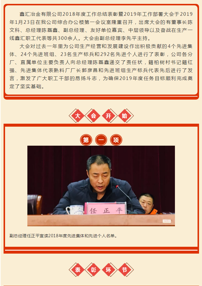 新聞?wù)?鑫匯冶金有限公司2018年度工作總結(jié)表彰暨2019年工作部署大會隆重召開!
